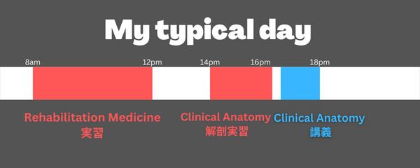 というのも、3年生までの座学学年では毎日違う科目の実習/講義に行っていたため、毎朝早く起きなければいけない状況にはなかったんですね。