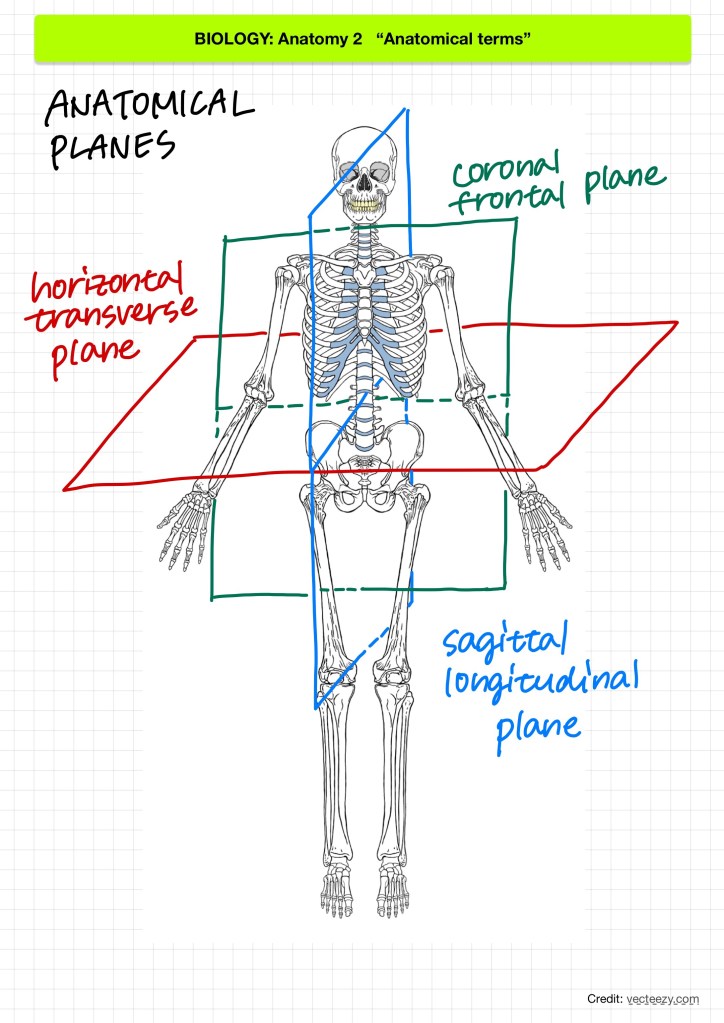 - Horizontal/transverse plane = 体を上と下に分ける面