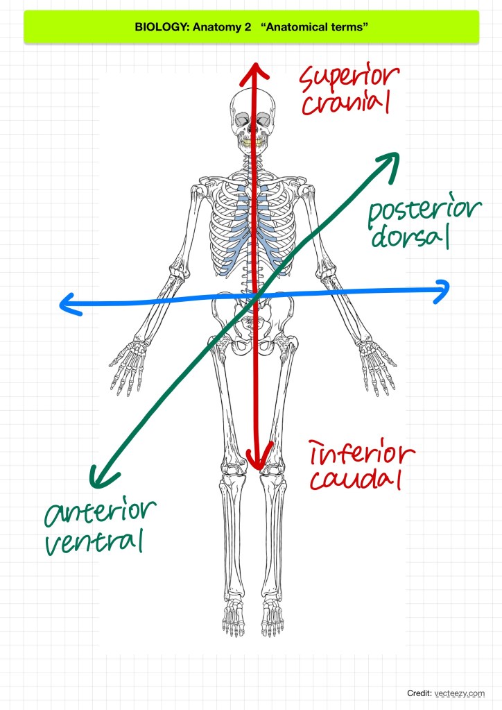 - Anterior/ventral (前の) vs posterior/dorsal (後ろの)