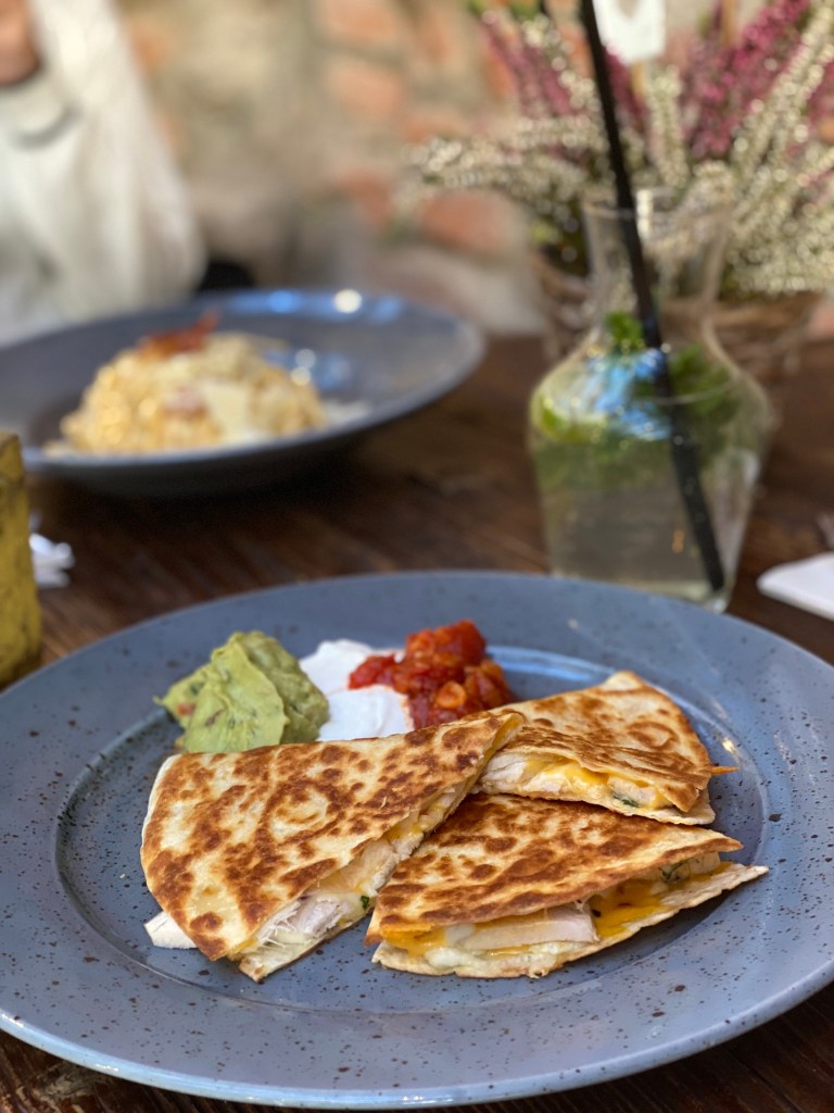 私はTex-Mexというアメリカ風メキシコ料理が大好きなので、メニューにquesadilla(ケサディーヤ、トルティーヤにチーズなどを挟んで焼いたもの)があってテンションが上がりました。